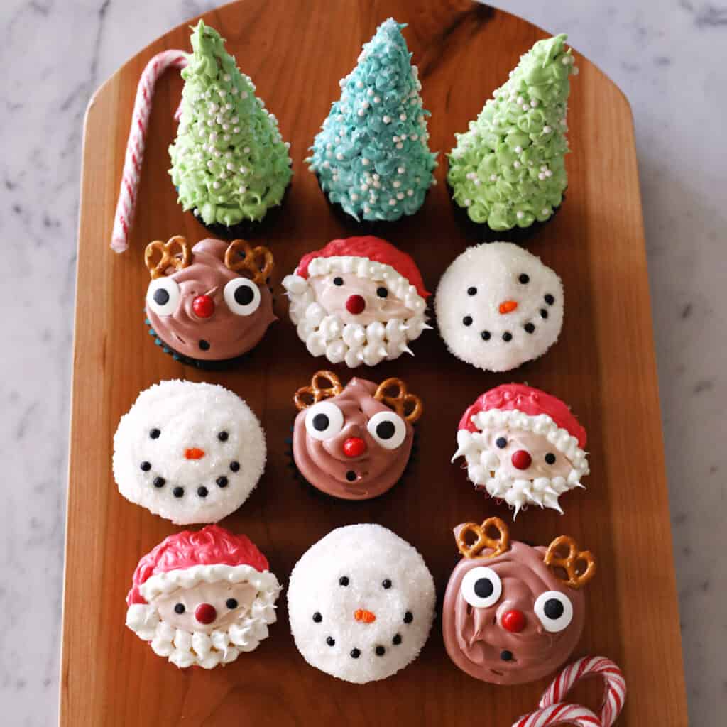 If you are doing some holiday hosting this season and need a few easy Christmas cupcake decorating ideas, we’ve got ’em! You don’t have to be a professional baker to execute these cute ideas. You also could create any of these with a homemade cupcake and frosting recipe OR store-bought options.