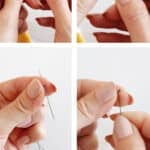 Fold your thread over the top of your needle and pinch it tight on the bottom with your thumb and forefinger. Pull your needle out so that you have a tiny loop pinched between your fingers.