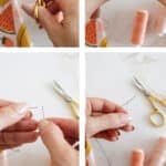 Since frayed thread ends make threading a needle a bit of a nightmare, cut the end of your thread so you have a fresh end that’s still woven pretty tight.