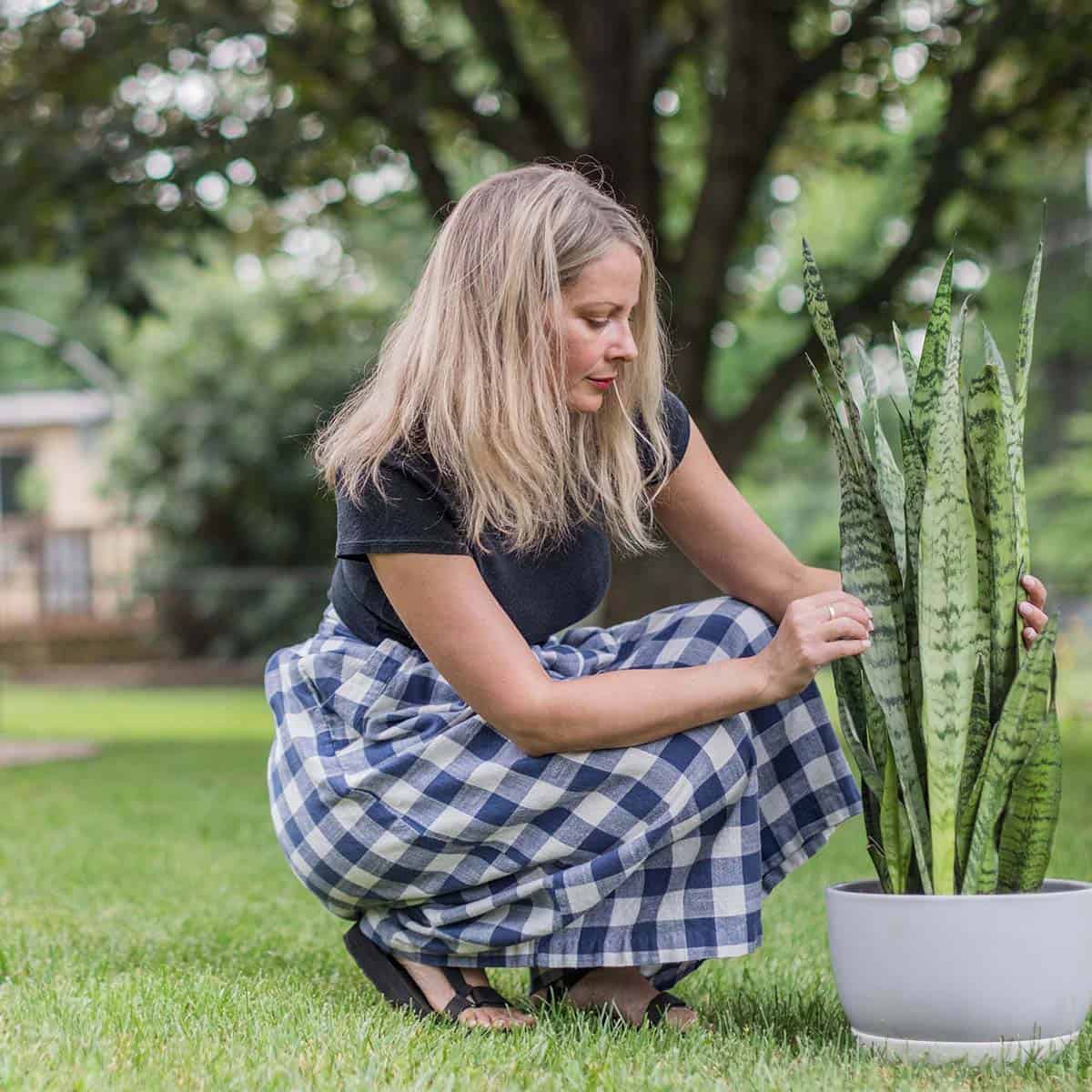 I like to get a pot that gives my new plant about 2 inches of growth room around the whole diameter of the pot. This gives the plant room to grow but it’s still a bit snug. Replanting your sansevieria in too big of a pot means more soil, leading to more time to dry out, which can lead to root rot.