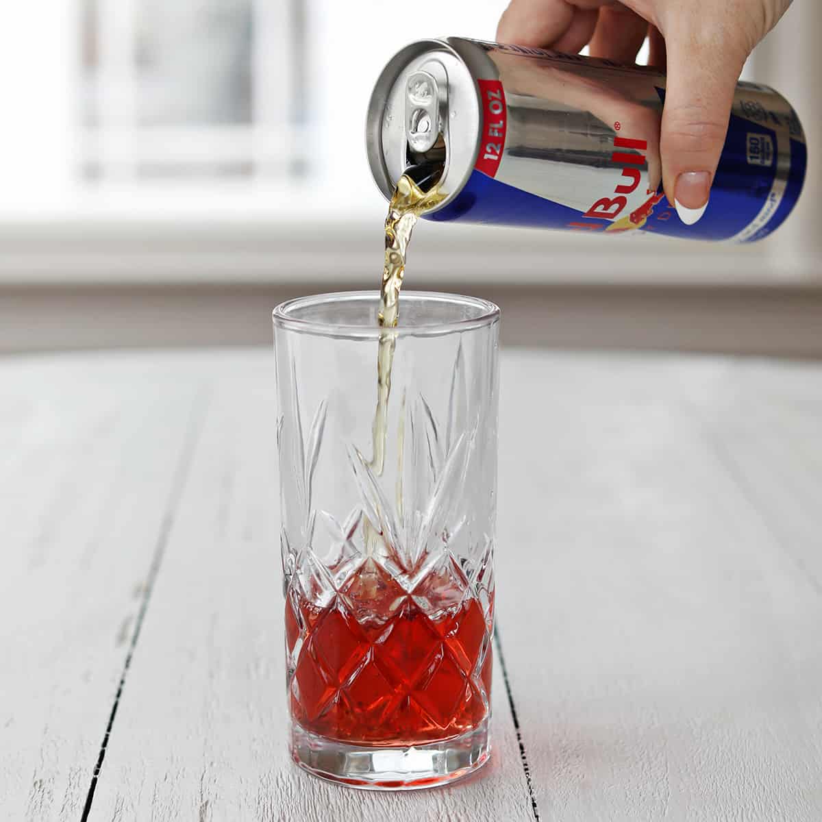 - If your Red Bull wasn’t chilled, you can use a cocktail shaker with ice to mix the drink ingredients (minus the shot).