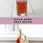The Vegas Bomb is a bomb shot recipe made of Crown Royal, peach schnapps, cranberry juice, and energy drink. This fruity flavored drink combines alcohol and caffeine for a fun drink to start the night off with. This Vegas Bomb recipe is best enjoyed as a bomb shot. This means you’ll drop the shot into the larger drink, creating a fun splash. This is a fun party drink to kick your party up a notch.